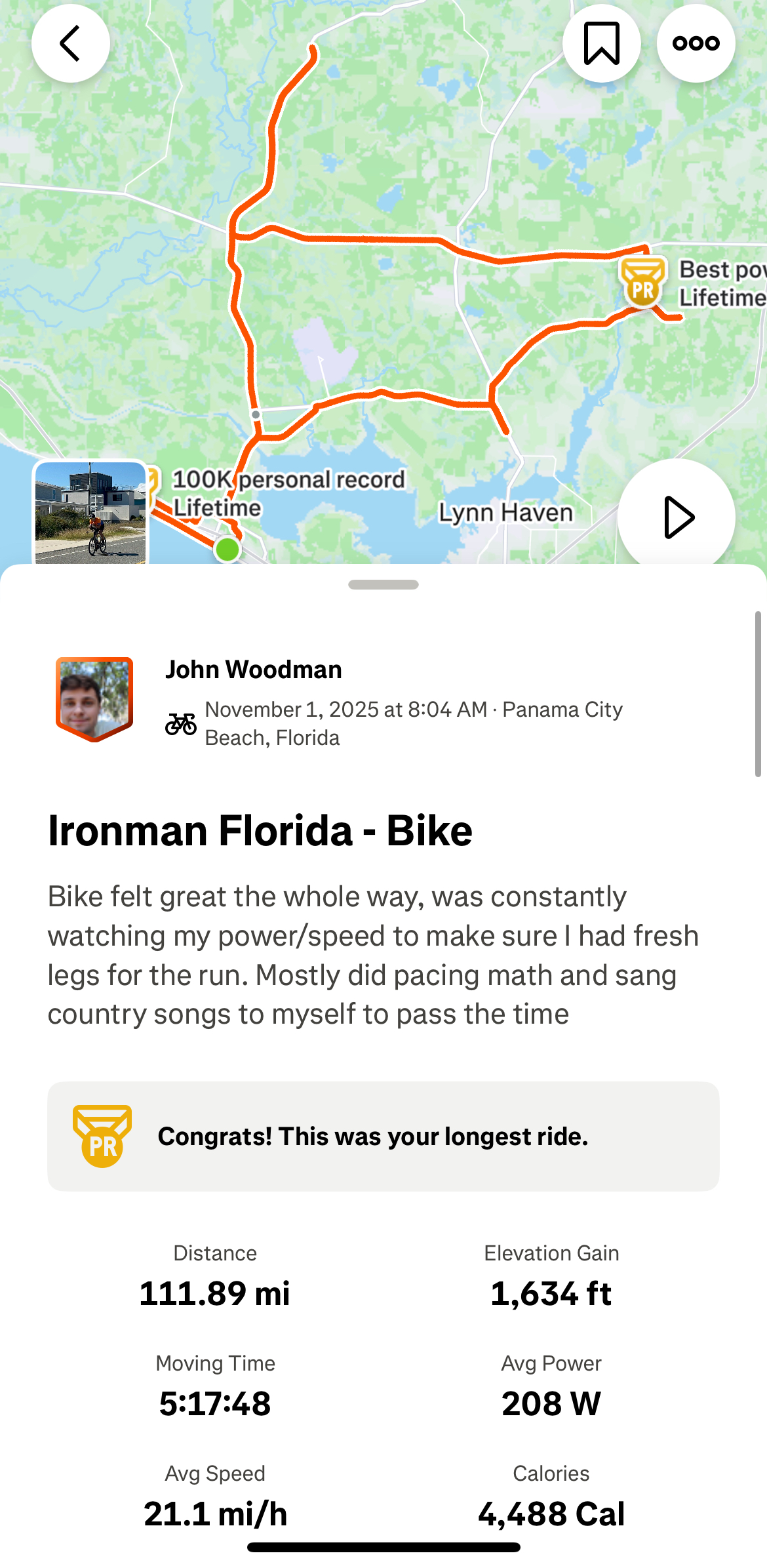 This is my race recap for Ironman Florida 2025, my very first full Ironman. I’ll try to add as much details as possible on the conditions of the course, the organization of the race, and how I felt during each leg. I’ll add some details on my nutrition, but for a full break down of that, see my separate post here.